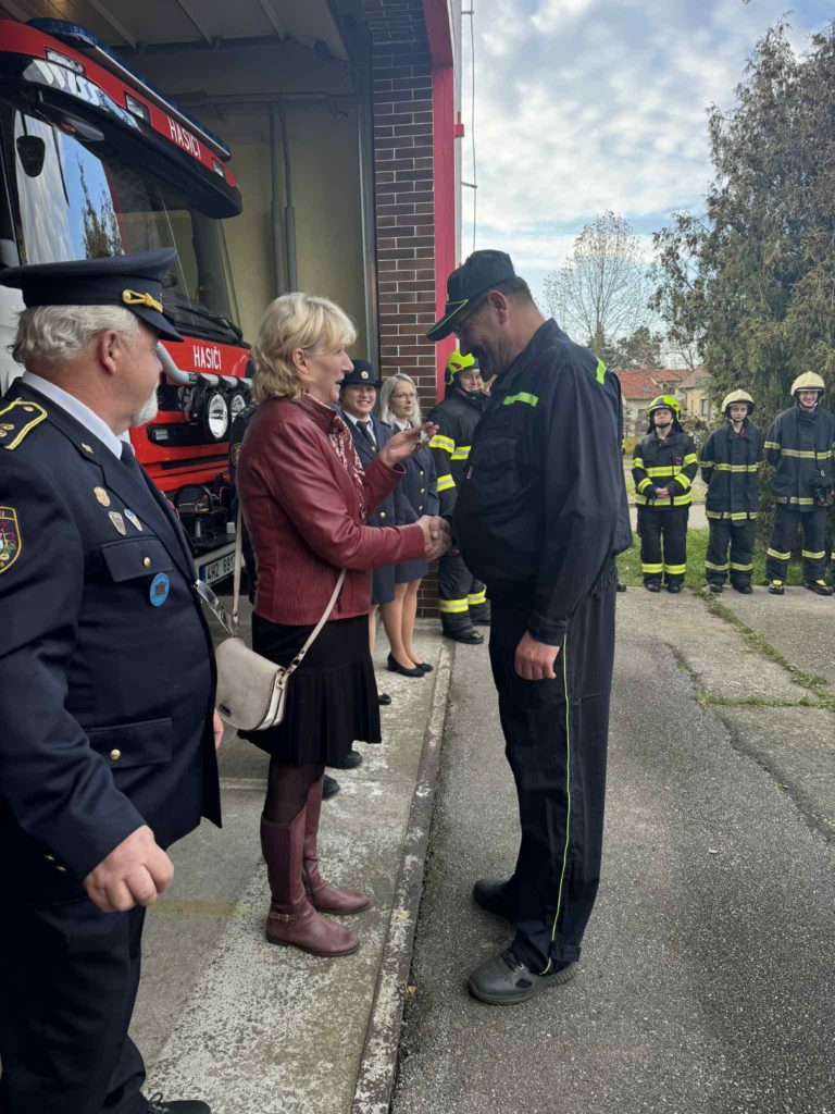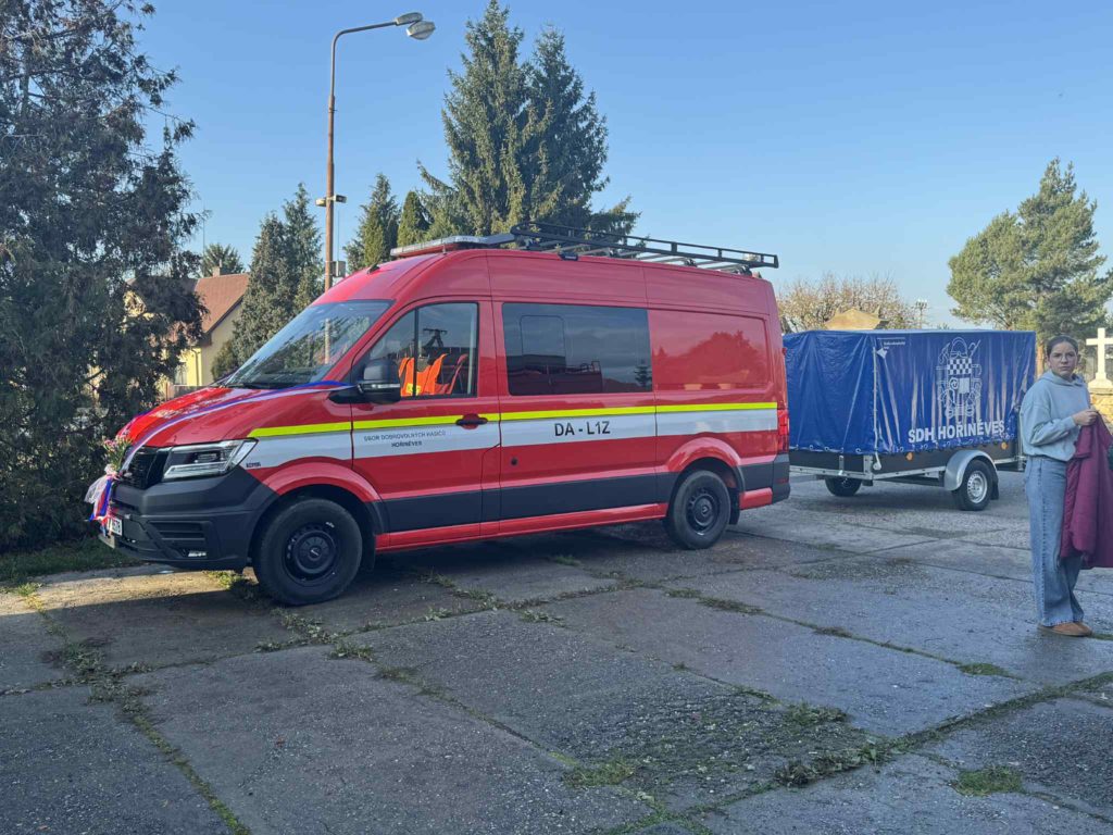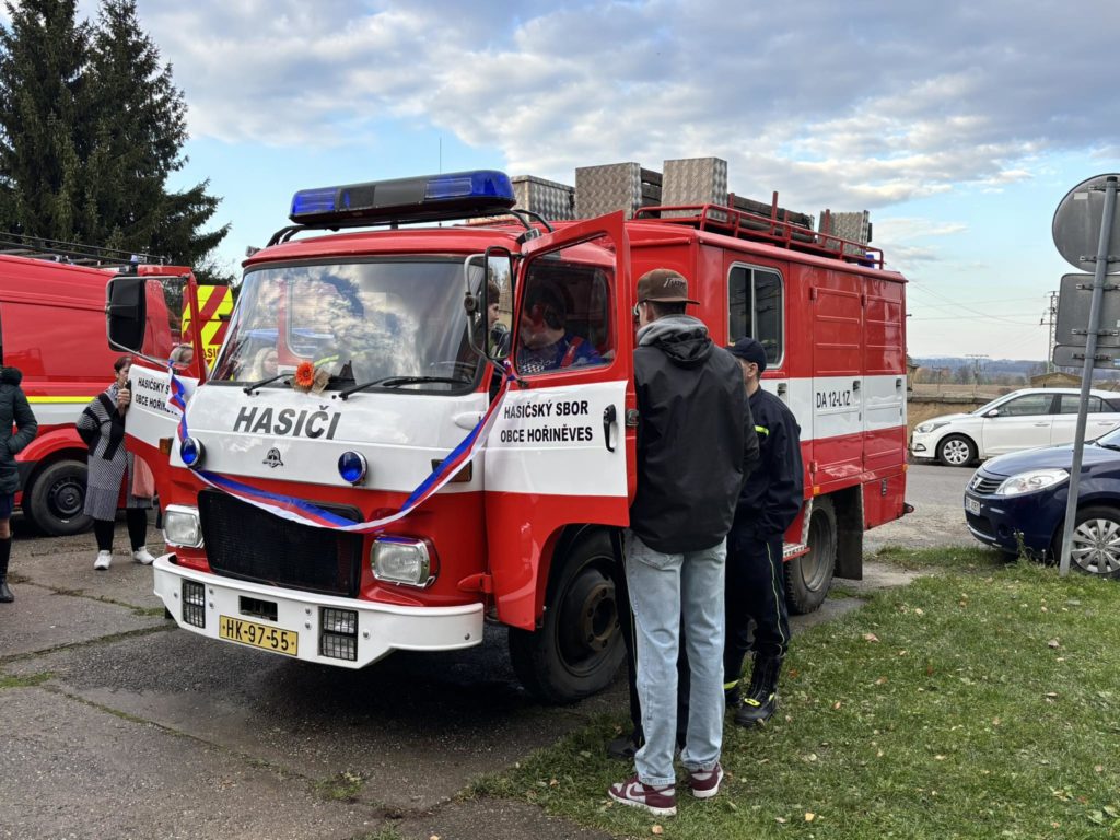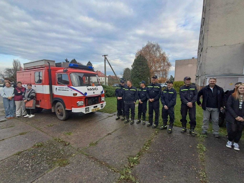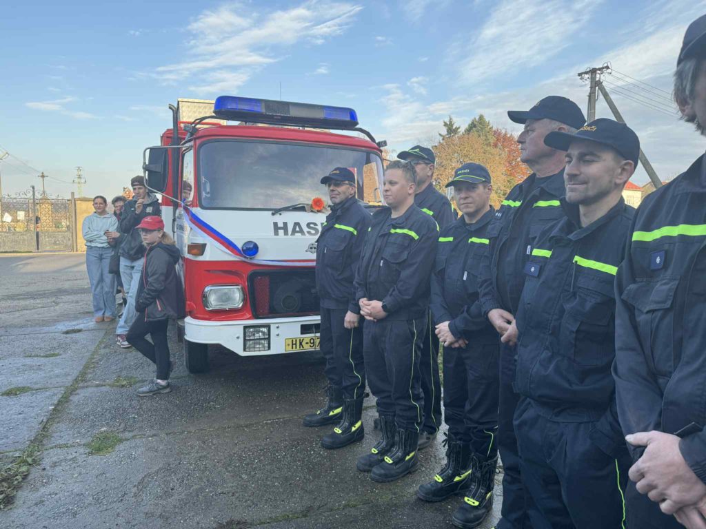 V sobotu 8.11.2025 jsme se s naší technikou a v plné parádě zúčastnili slavnostní akce u našich sousedů a kamarádů z SDH Hořiněves – rozloučení s jejich věrnou Avií a přivítání nového dopravního automobilu.